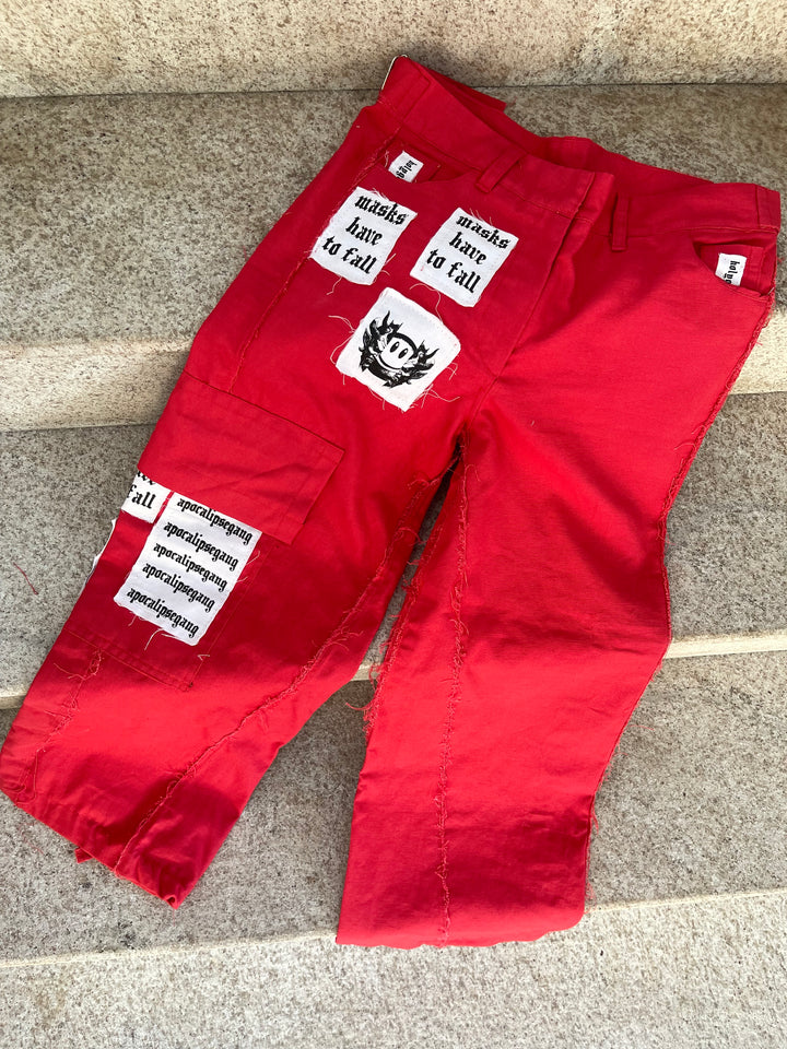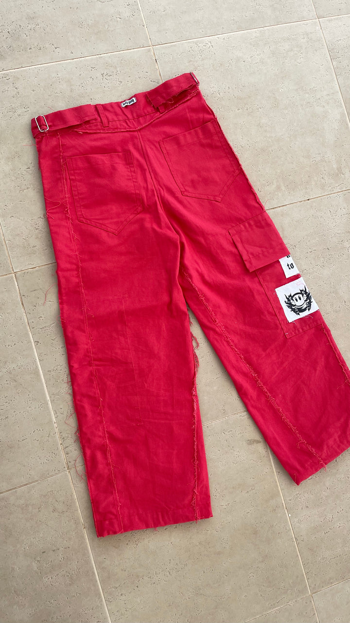 Calça Vermelho Cargo Em Sarja E Regulador Com Patches - 100% algodão