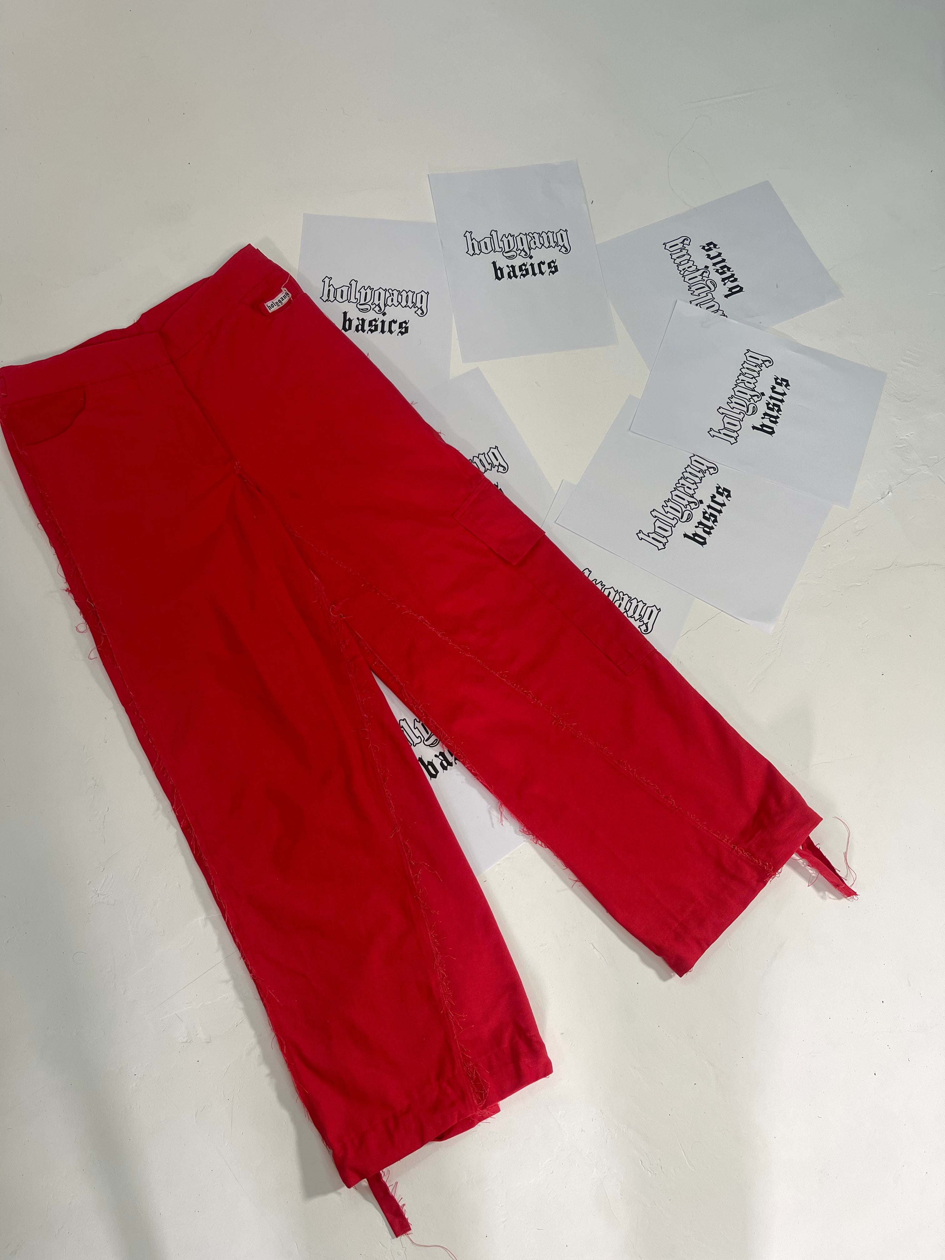 Produto: Calça Cor: Vermelha Modelagem: Solta Cintura: Zíper, fecho e reguladores no cós Barra: Reguladores na barra Tecido: Sarja Acabamento: Embutido Composição: Algodão 100% reciclado Detalhe: Bolso Faca frontal, Bolso Cargo lateral e Bolso Básico traseiro Fabricante: Holygang *Na foto a modelo veste tamanho P...