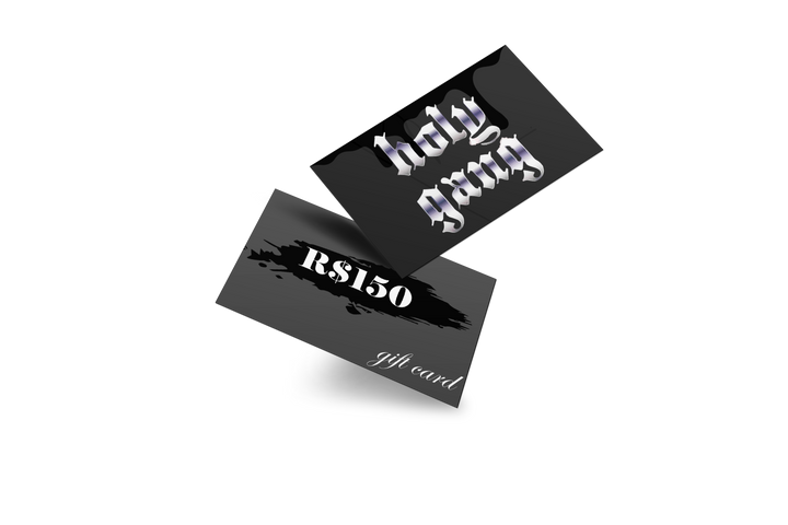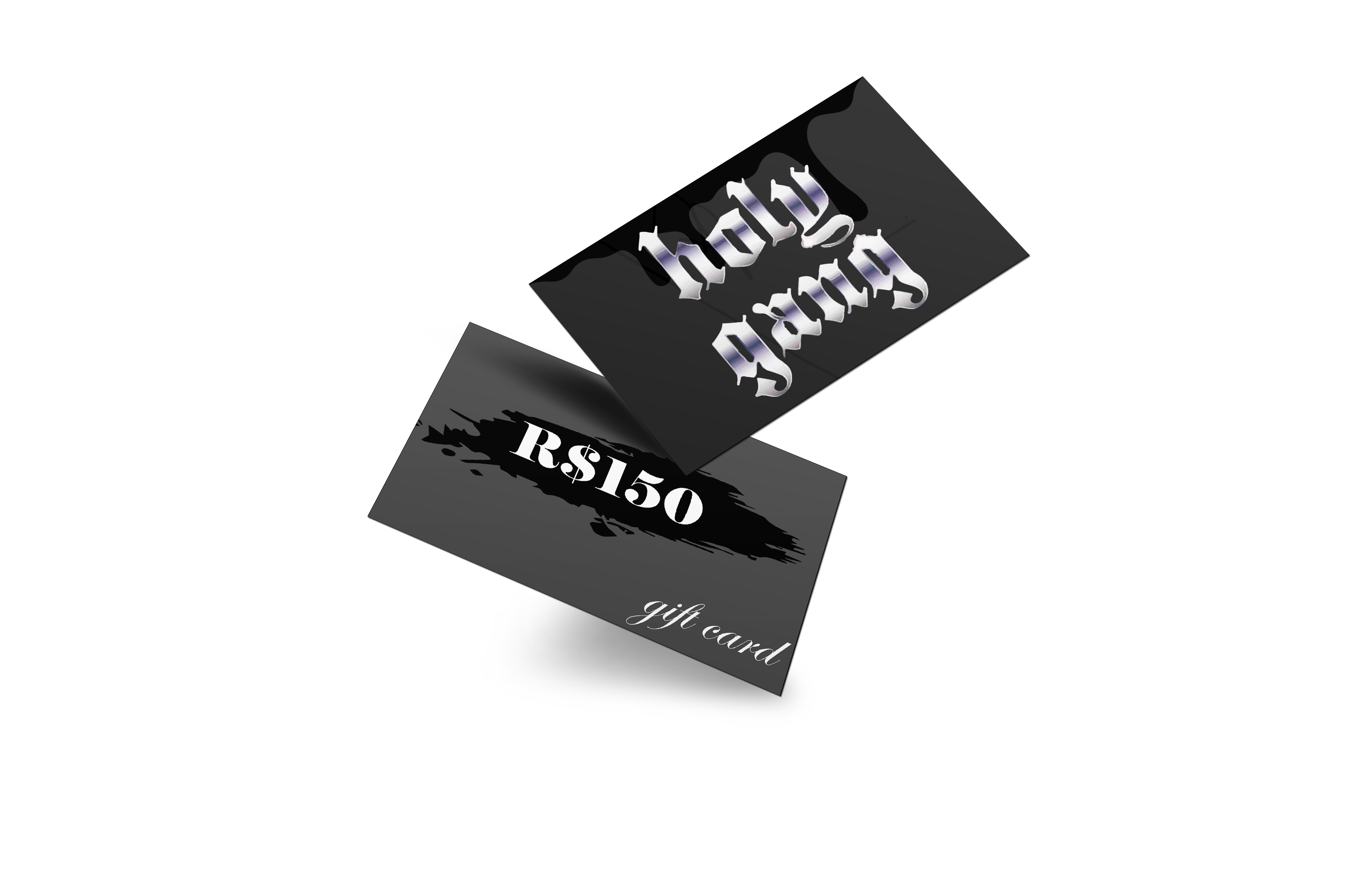 Cartão de presente no valor de 150 reais para gastar com produtos holygang.