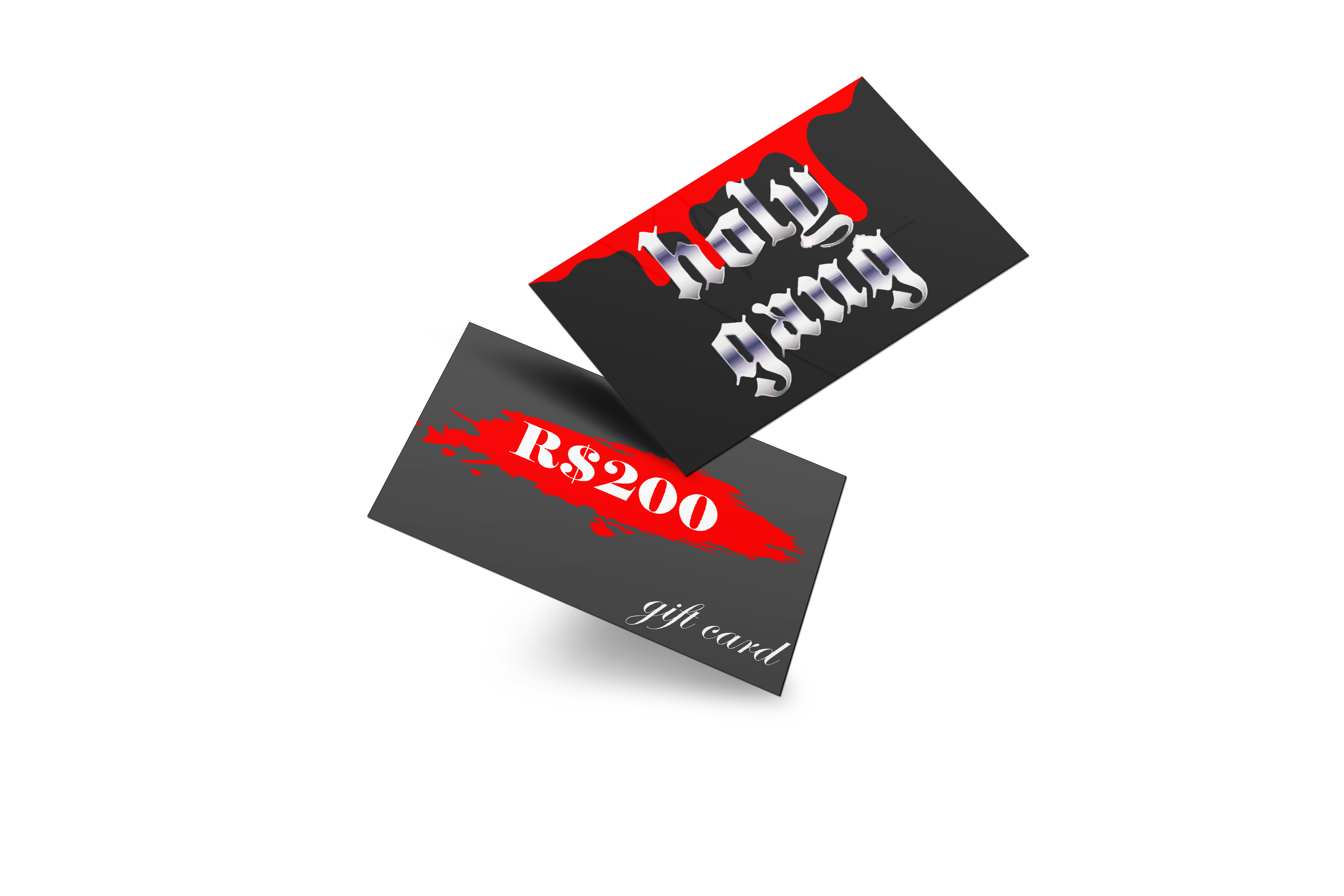 Cartão de presente no valor de 200 reais para gastar com produtos holygang.