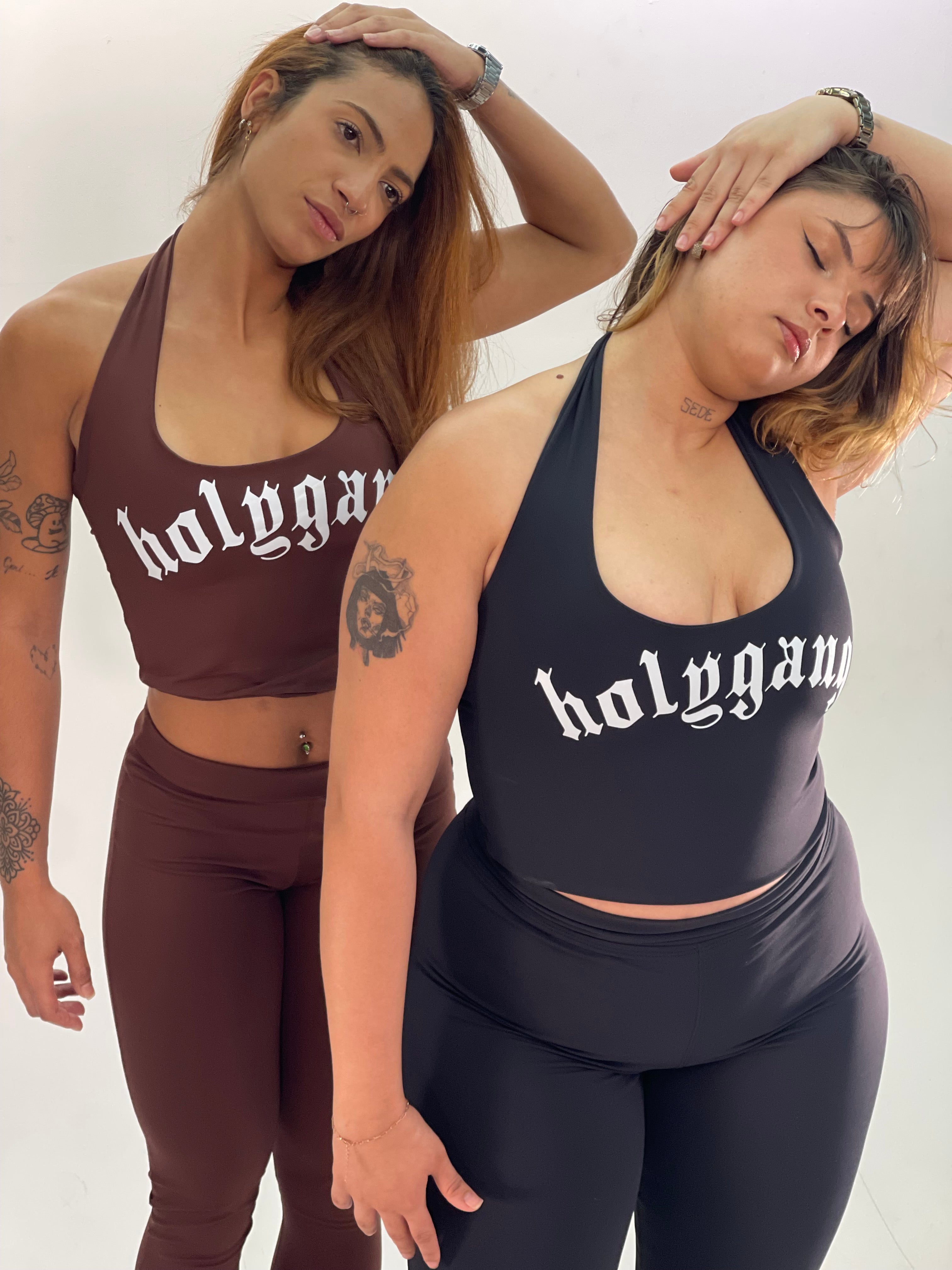 Produto: Regata halter neck preto Cor: Preto Modelagem: Justa Tecido: Suplex Dupla Camada Acabamento: Embutido Composição: 85% de poliamida e 15% de elastano Gramatura: 310 Fabricante: Holygang *Na foto a modelo veste tamanho G Medidas da peça fora do corpo: P: 72 cm busto X 64...